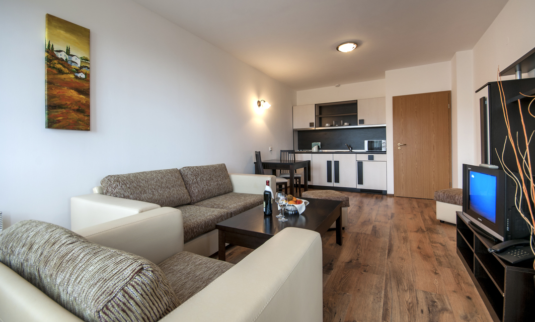 Located at the foot of the Pirin Mountain, Grand Royale Apartment complex & Spa offers to its guests tranquility, beautiful nature, and peaceful stay among facilities, made especially for them. The rooms are bright and spacious, equipped with everything needed for a pleasant stay. In a warm and cozy atmosphere, we strive for our guests to have amazing emotions, combined with delicious food and Spa rituals. Guided by our mission to provide the best care and service for our guests, the team of Grand Royale & Spa Apartment Hotel is fully committed to customer care. Set 1969 feet away from the nearest cable car and 4265 feet away from the center of Bansko, the 4-star Grand Royale Apartment Complex & Spa offers an indoor pool, a large spa, a gym and a children's playground. Free WiFi is provided in all areas. This large and modern hotel offers comfortable apartments with wooden floors. Amenities include an electrical kettle, microwave, cable TV and a mini-bar. All rooms include balconies. Grand Royale’s spacious public areas include a lobby bar and a cigar bar with a designated smoking area and a billiard. The restaurant serves a selection of international cuisine. The spa area includes different types of saunas, a hot tub, a steam bath and a relaxation area. Turkish bath, salt room and massage treatments by professional physiotherapists are also available at a surcharge. Free shuttle service to the first station of the gondola, during the winter season. Against an extra charge, airport pick-up service is also available from Thessaloniki, Sofia and Plovdiv Airports. Sofia is 93 mi away. Free on-site parking is provided at the Grand Royale Apartment Complex & Spa upon availability.
